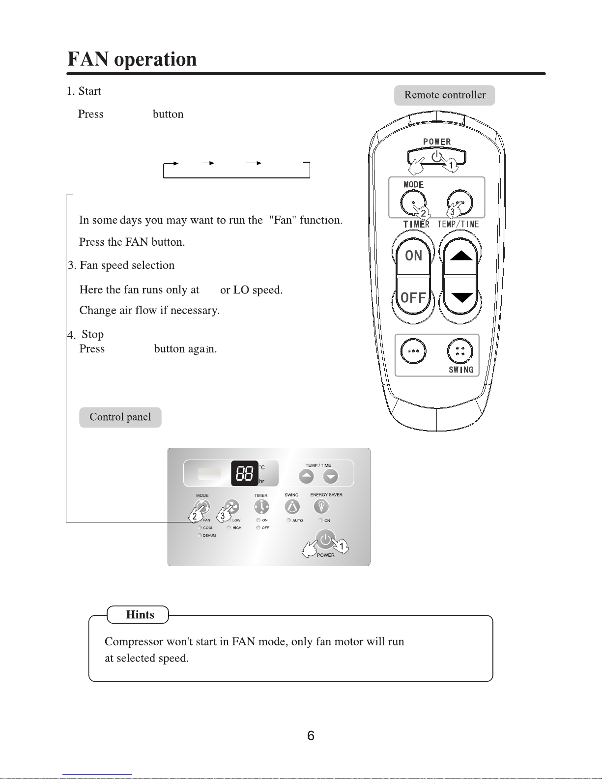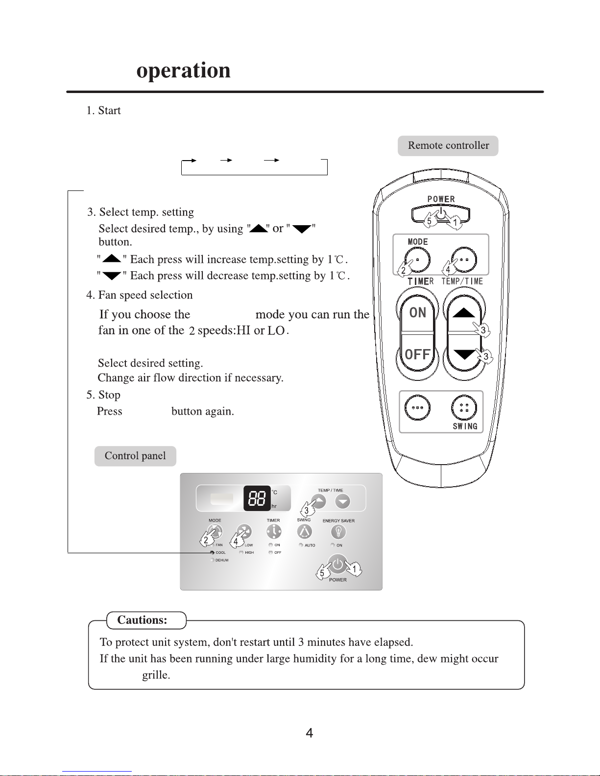 in COOL or FAN mode, otherwise , condensate water might occur.