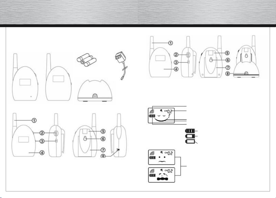 Σε Ισχύ Εντός / Εκτός Εμβέλειας / Χαμηλή μπαταρία / κατάσταση Baby calling