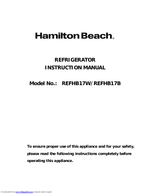 Refrigerator REFHB17W/REFHB17B Use and Care Manual Support: 1-877-395-5109