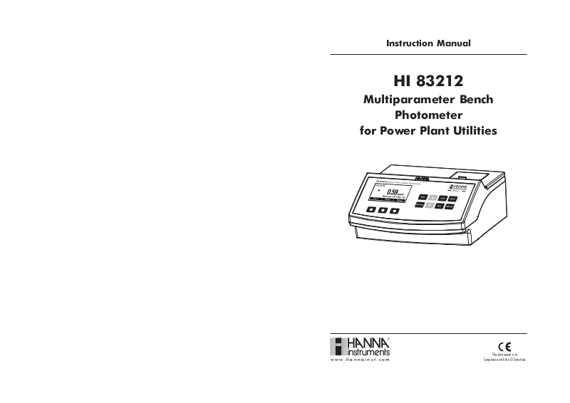 Thank you for choosing a Hanna product. Please read this instruction manual carefully before using the