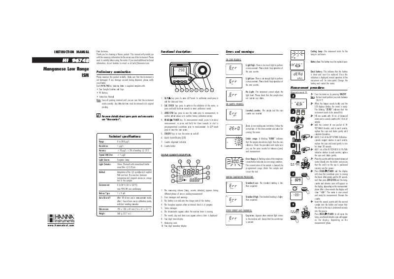 information, do not hesitate to e-mail us at tech@hannainst.com.
