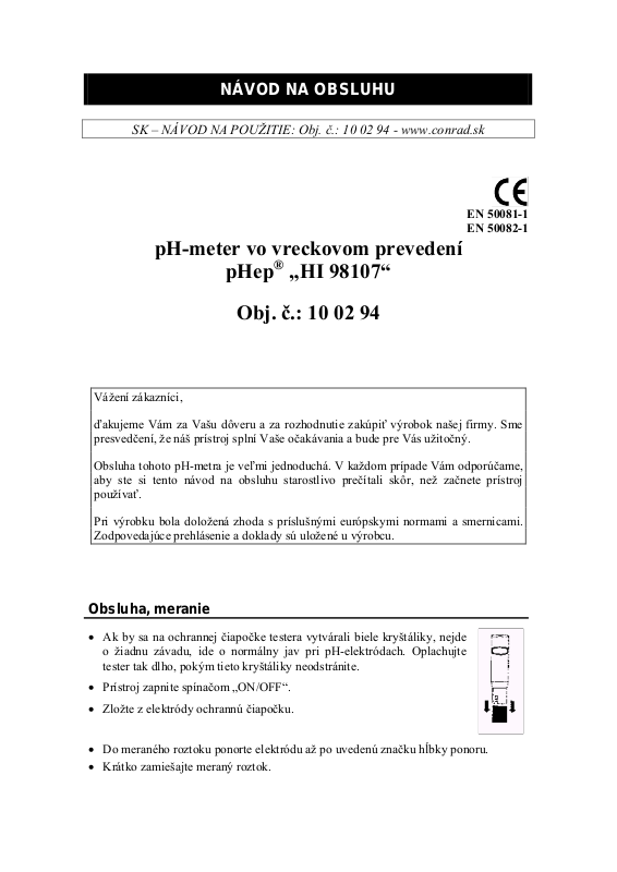 SK – NÁVOD NA POUŽITIE: Obj. č.: 10 02 94 - www.conrad.sk