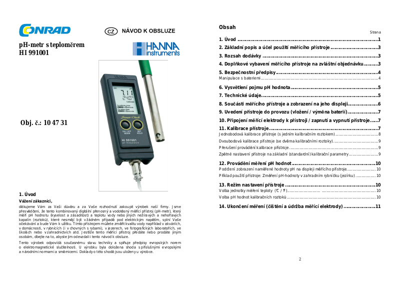 14. Ukončení měření (čištění a údržba měřící elektrody) ........................11