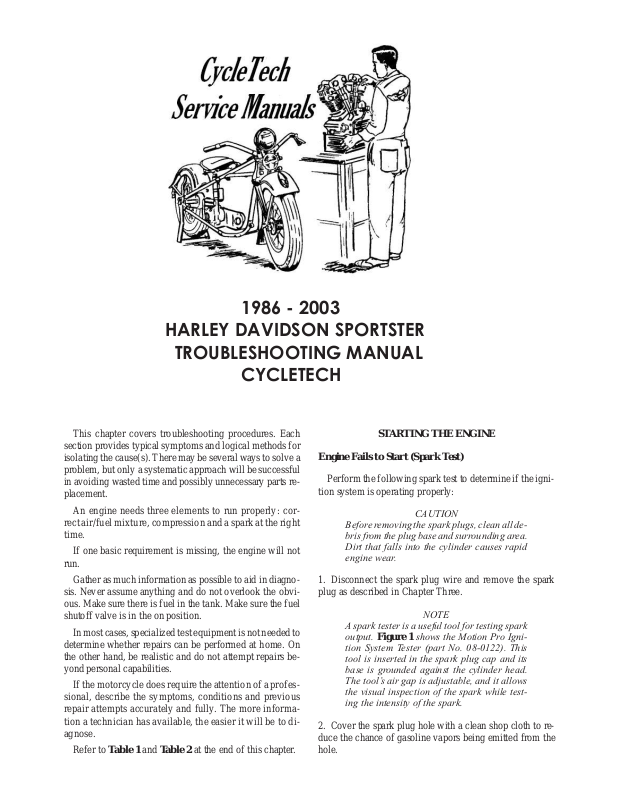 7. If the spark is weak or if there is no spark, refer to Engine is Difficult to Start in this section.