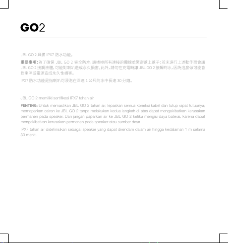 speaker. And do not expose JBL GO 2 to water while charging, as doing so may resultin permanent