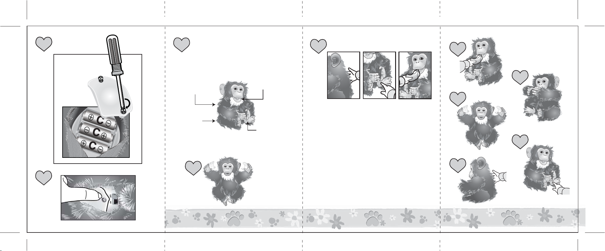 Avant de commencer à jouer avec MON VRAI CHIMPANZÉ, demande à un adulte d’installer les piles.