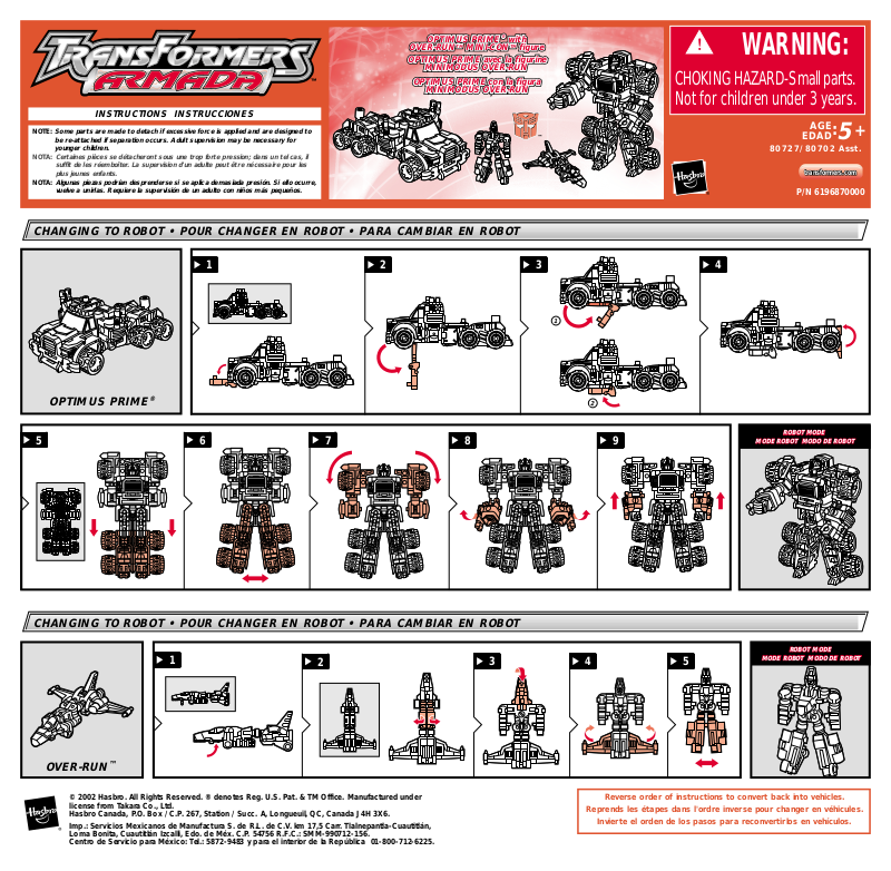 Hasbro Canada, P.O. Box / C.P. 267, Station / Succ. A, Longueuil, QC, Canada J4H 3X6.