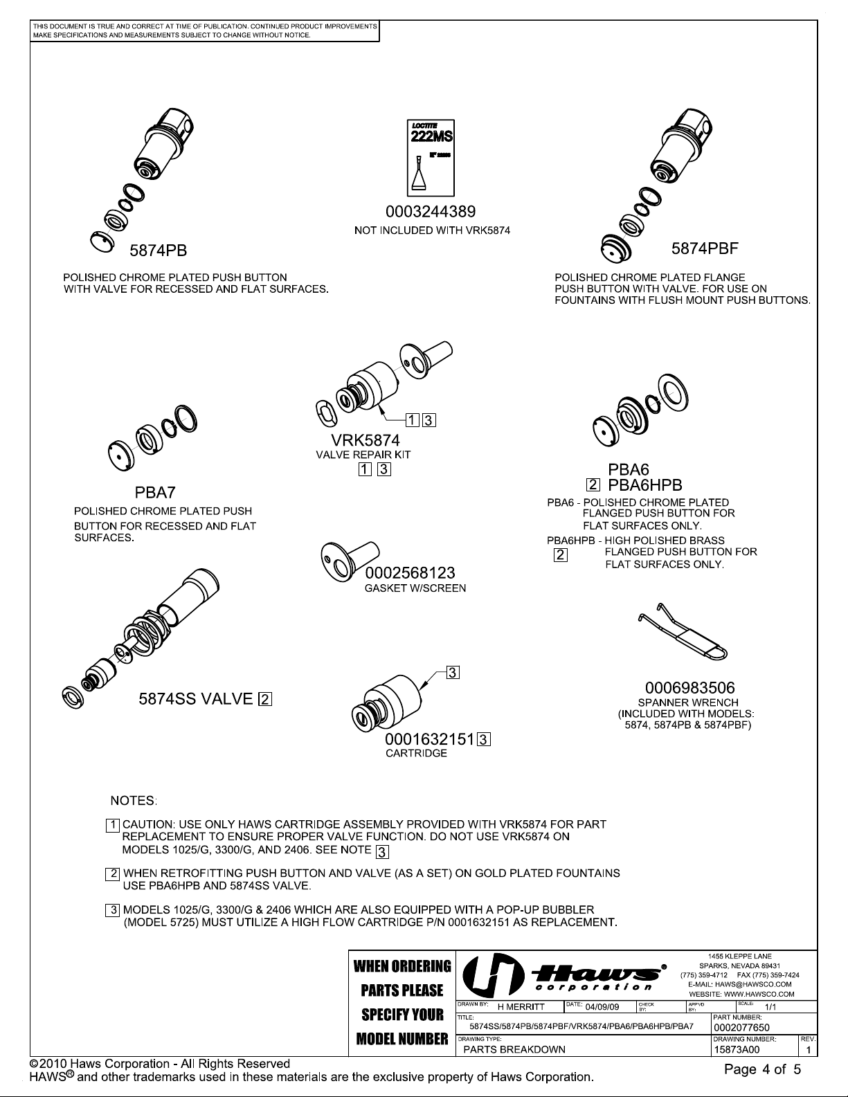 Model 5874SS/5874PB/5874PBF/VRK5874/PBA6/PBA6HPB/PBA7 Page 1 of 5