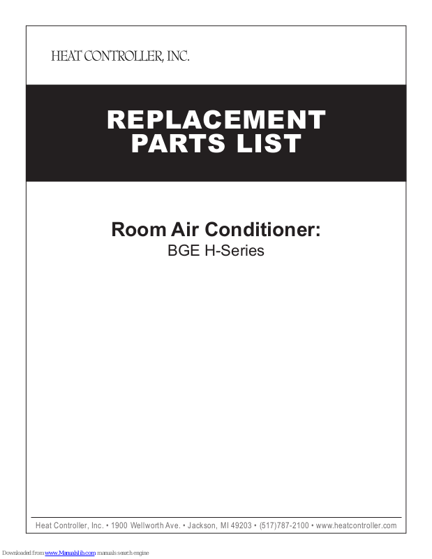 Heat Controller, Inc. Thru-the-Wall Room Air Conditioner BGE H-Series Parts List