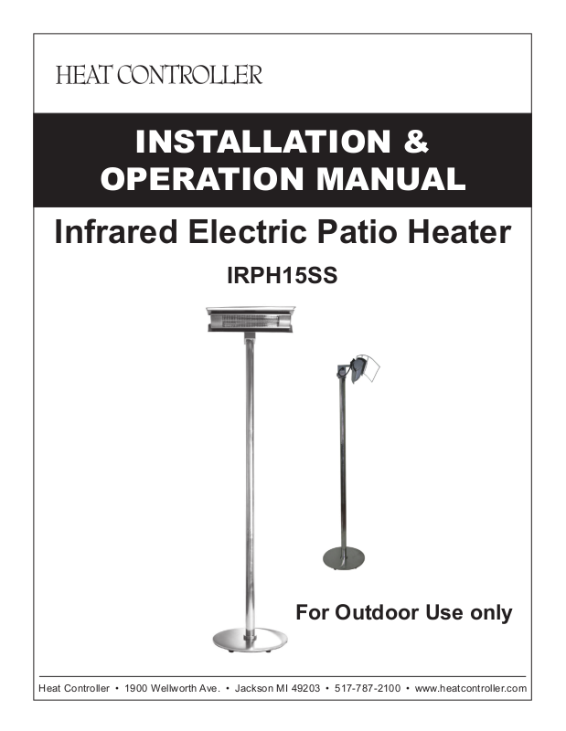 Heat Controller Infrared Electric Patio Heater Installation & Operation Manual