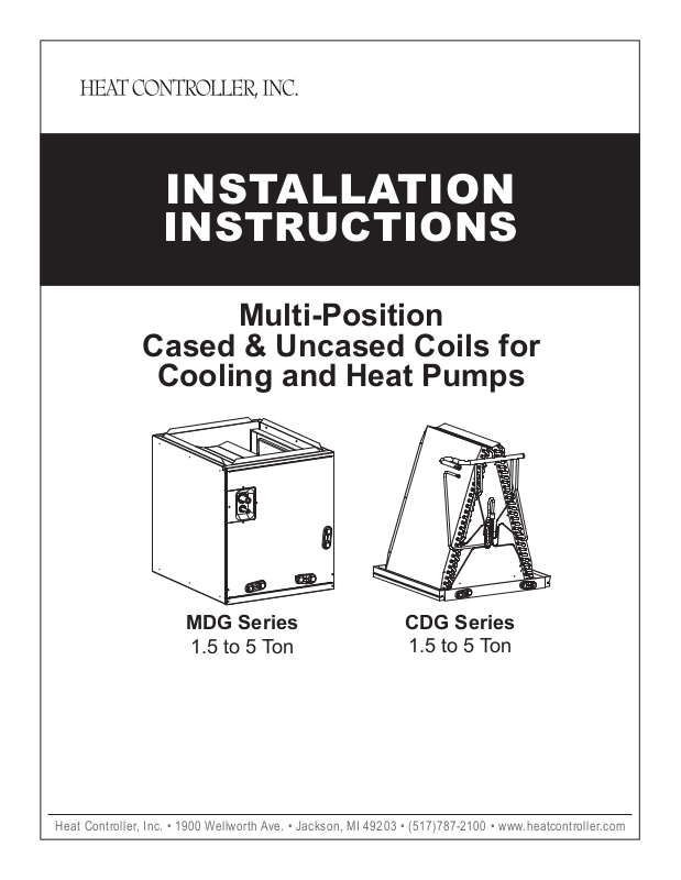 Heat Controller, Inc. INSTALLATION INSTRUCTIONS Cased/Uncased Coils