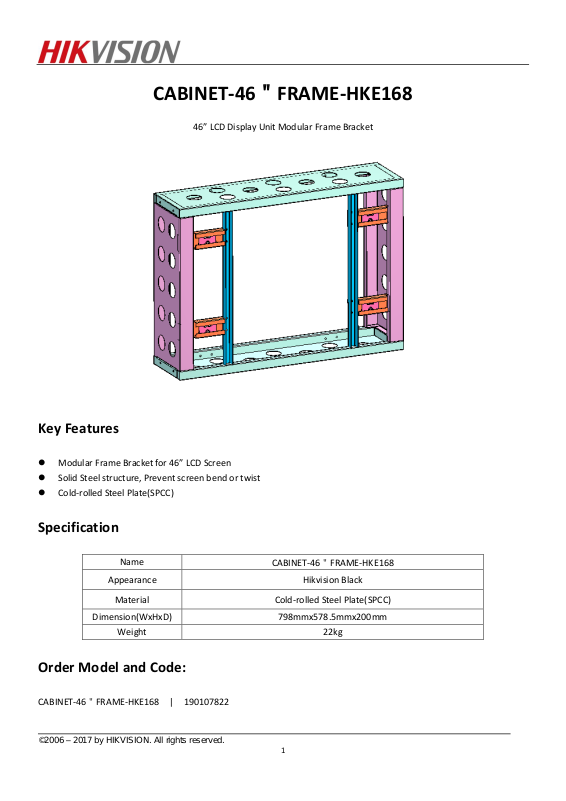 Hikvision CABINET-46-FRAME-HKE168 Specsheet