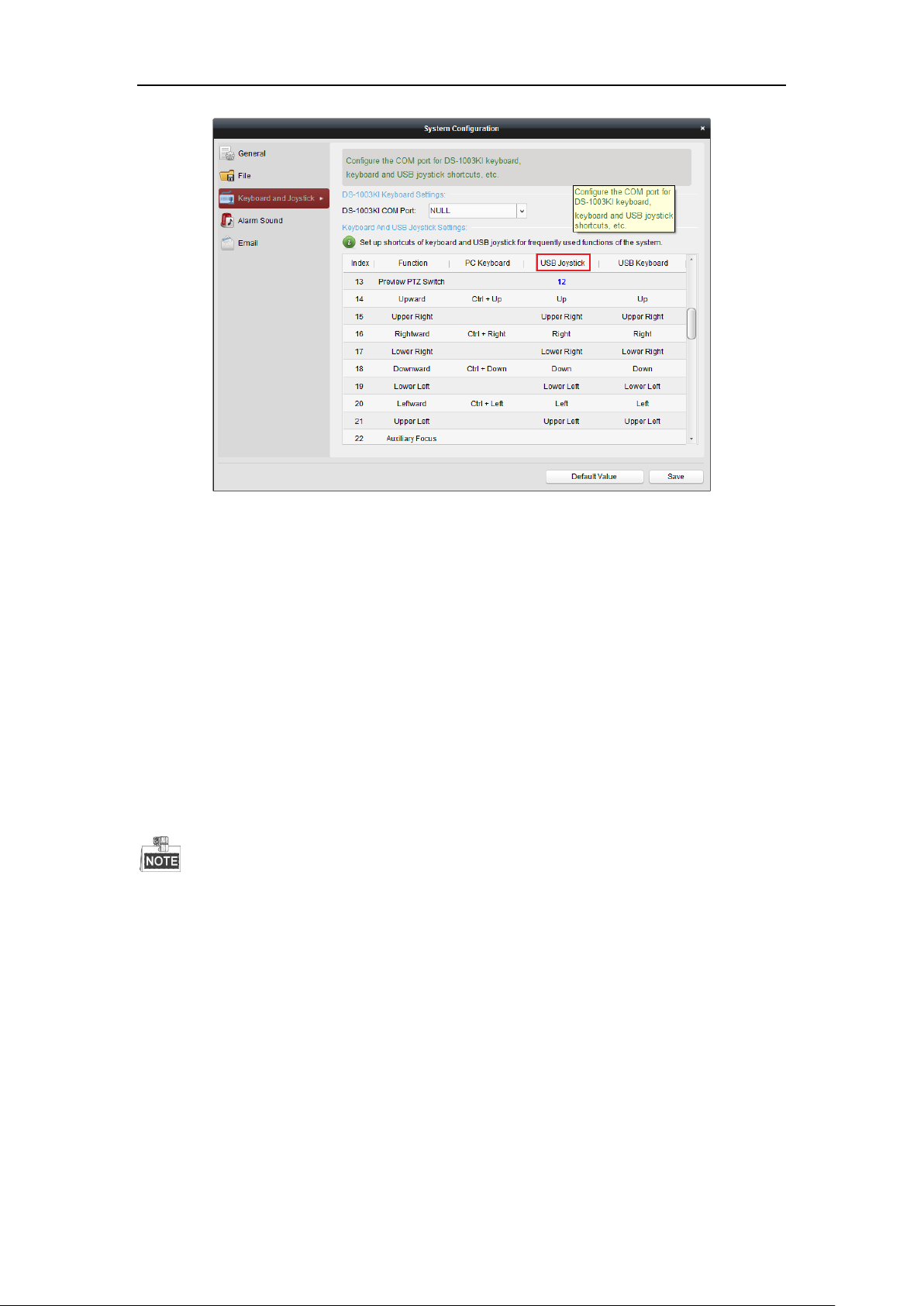 PTZ control and window switch. The default mode is set as USB joystick mode when it is