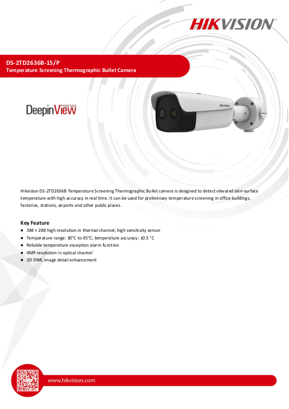 Hikvision DS-2TD2636B Temperature Screening Thermographic Bullet camera is designed to detect elevated skin-surface