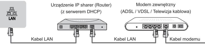 Zalecamy użycie modemu lub routera obsługującego protokół dynamicznego konfigurowania węzłów (DHCP). Modemy i routery obsługujące DHCP automatycznie przekazują adres IP, maskę podsieci, adres bramy oraz DNS, dzięki czemu nie trzeba ich wprowadzać ręcznie. Większość sieci domowych jest już wyposażona w DHCP.
