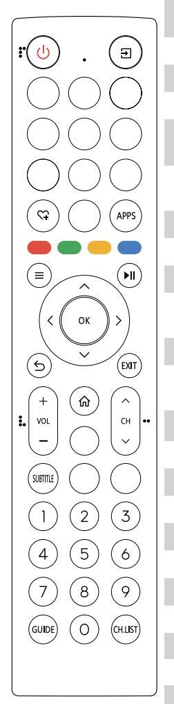 | Przyciski z cyframi | Wybierz kanał lub wprowadź cyfry | ||