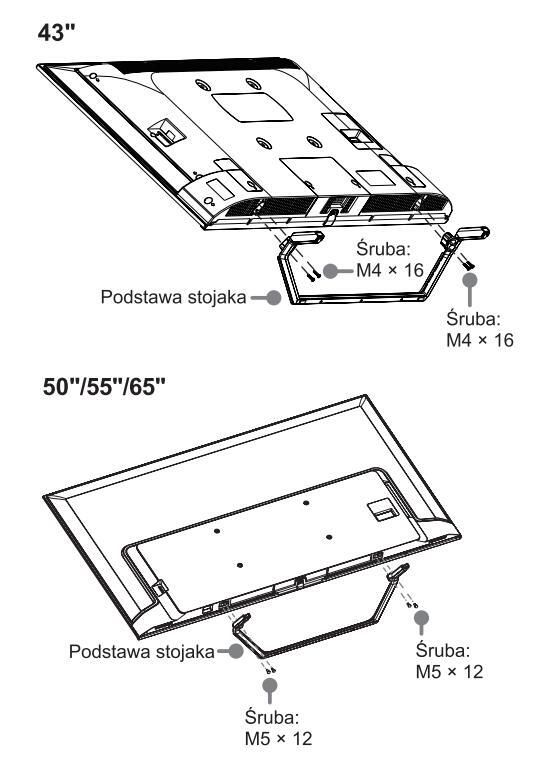 Przed instalacją telewizora zdemontuj jego podstawę, jeżeli została uprzednio zamocowana i upewnij się że wspornik do montażu ściennego jest dostosowany do wagi telewizora.