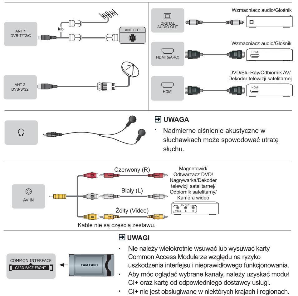 Podczas korzystania z anteny zewnętrznej, należy upewnić się, że system antenowy jest zabezpieczony przed skokami napięcia i gromadzeniem się ładunków statycznych.