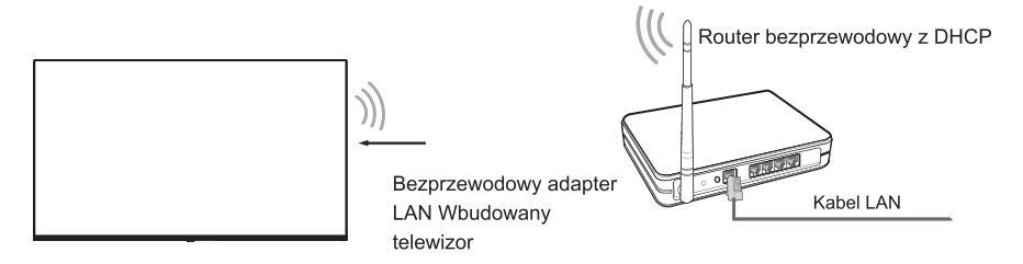Wbudowana bezprzewodowa sieć lokalna wykorzystuje pasma częstotliwości 2,4 GHz i 5 GHz. Aby zapobiec nieprawidłowemu funkcjonowaniu i wydłużonemu czasowi reakcji na skutek zakłóceń fal radiowych, należy trzymać telewizor z dala od urządzeń takich jak inne bezprzewodowe sieci LAN, mikrofalówki, telefony komórkowe i inne urządzenia wykorzystujące pasma częstotliwości 2,4 GHz i 5 GHz.