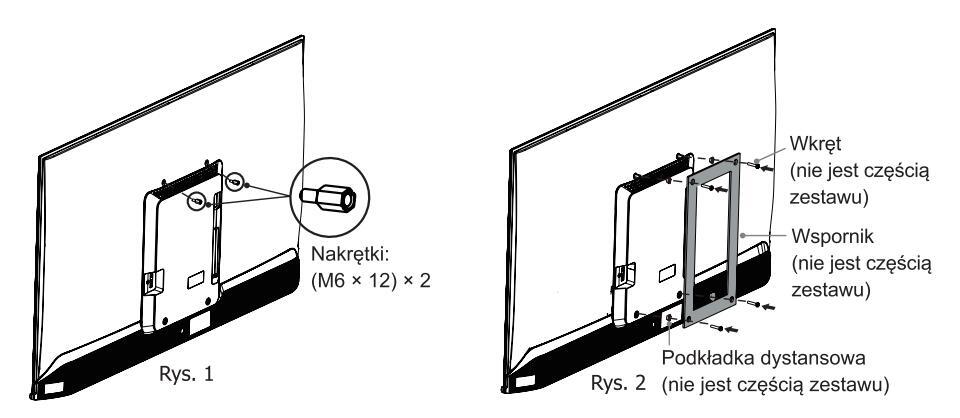 W przypadku montażu telewizora na ścianie, postępuj zgodnie z instrukcją dołączoną do wspornika montażowego. Nieprawidłowy montaż wspornika może spowodować upadek telewizora i stanowić zagrożenie dla zdrowia lub mienia