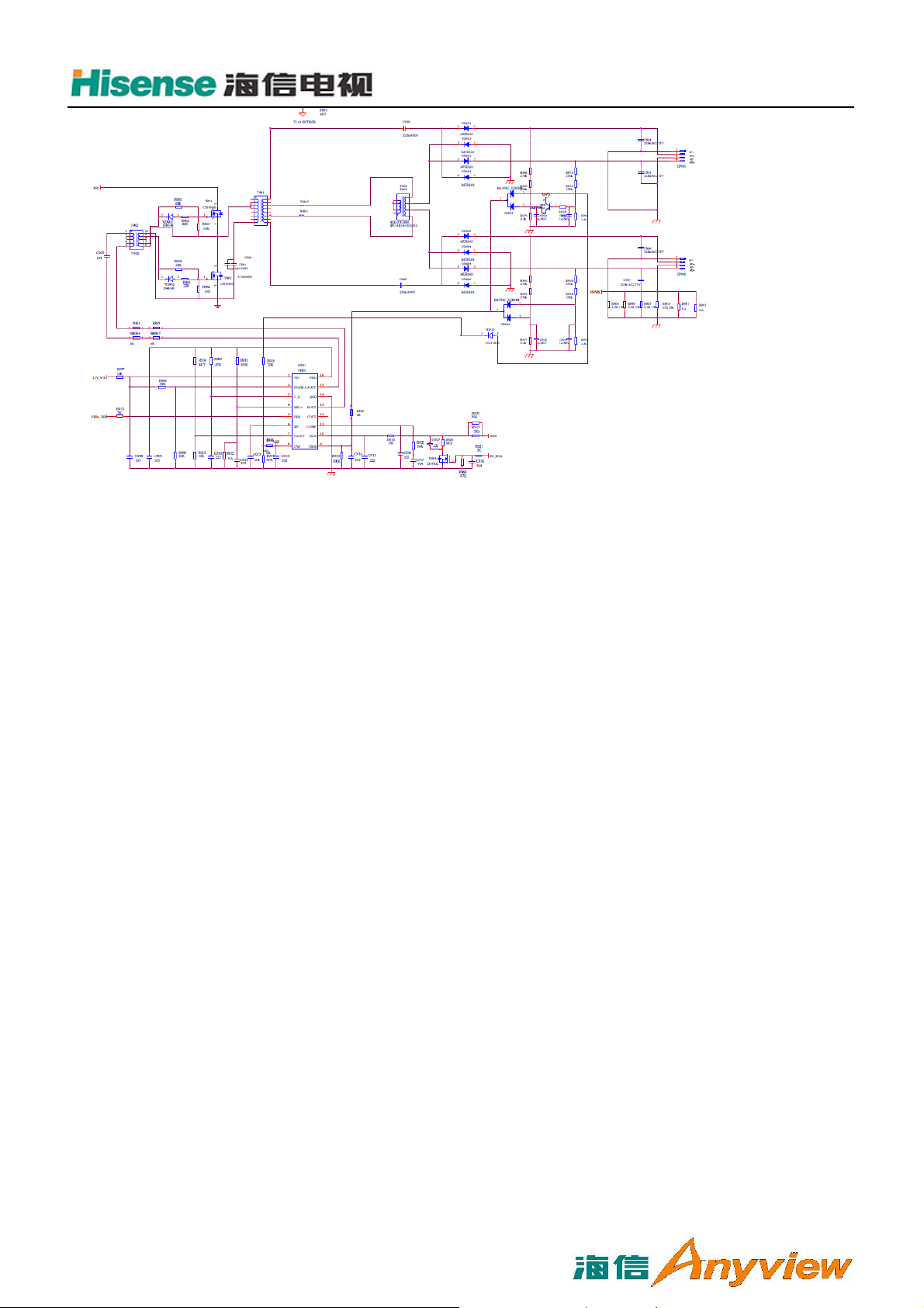 压;当 PWM 端子电压为高时,LLC 电路启动,输出两路恒流的 LED 驱动电压将 LED 背光点亮。