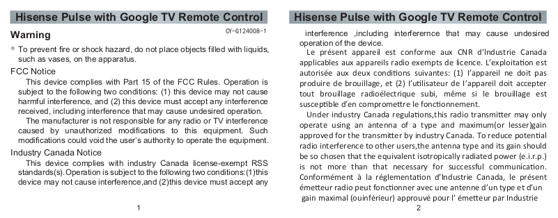 Hisense Pulse with Google TV Remote ControlHisense Pulse with Google TV Remote Control