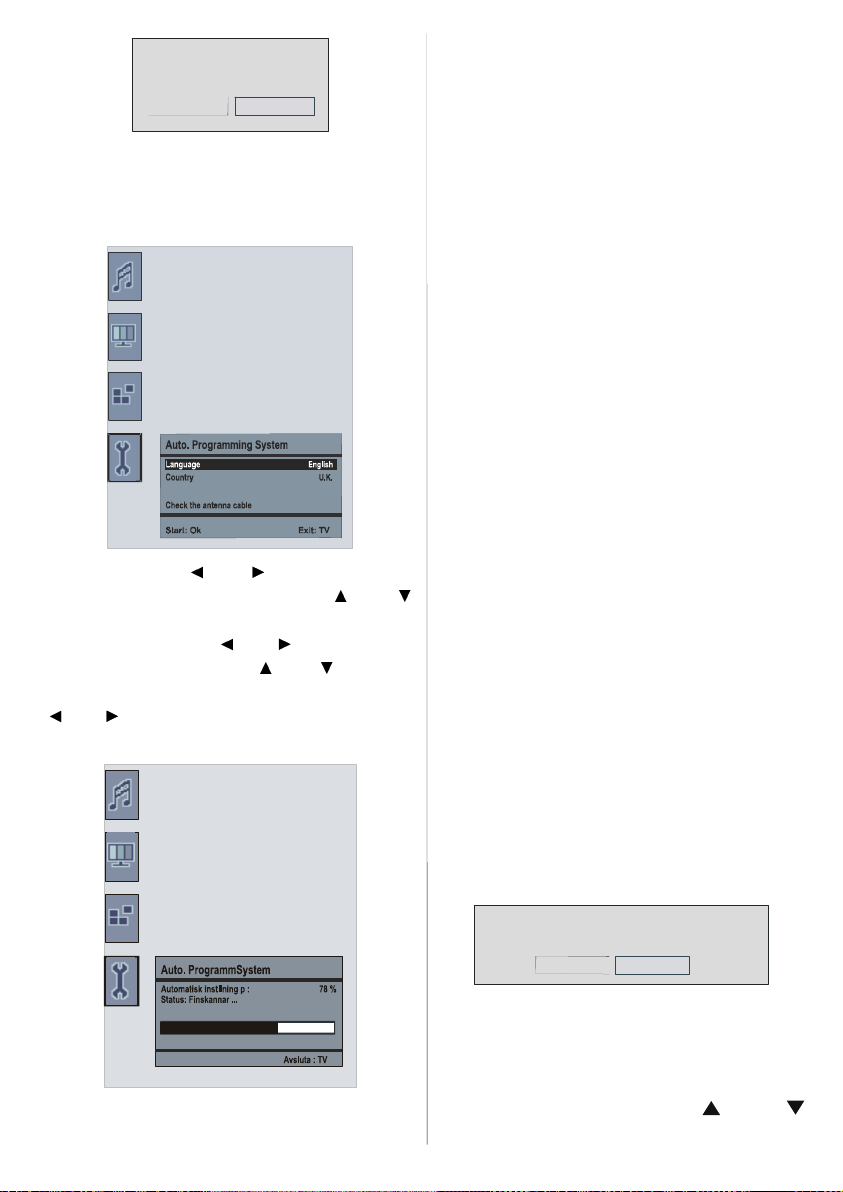 När TV: n slås på för första gången visas menyn för språkval på skärmen.