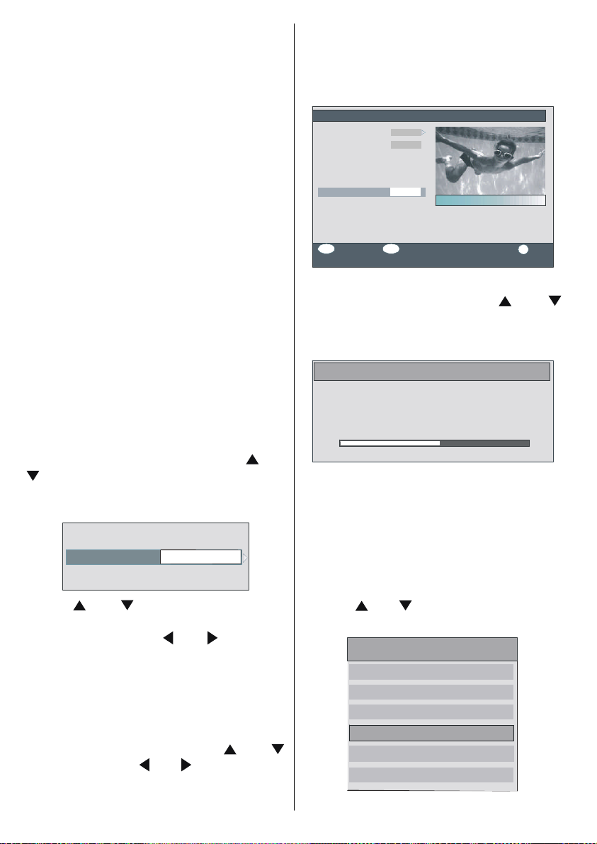 skärmen. Genom att trycka eller knapparna, välj det land du vill ställa in och tryck
