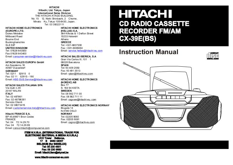 Tel: 04 – 72.14.29.70 Email: csgnor@hitachi-eu.com