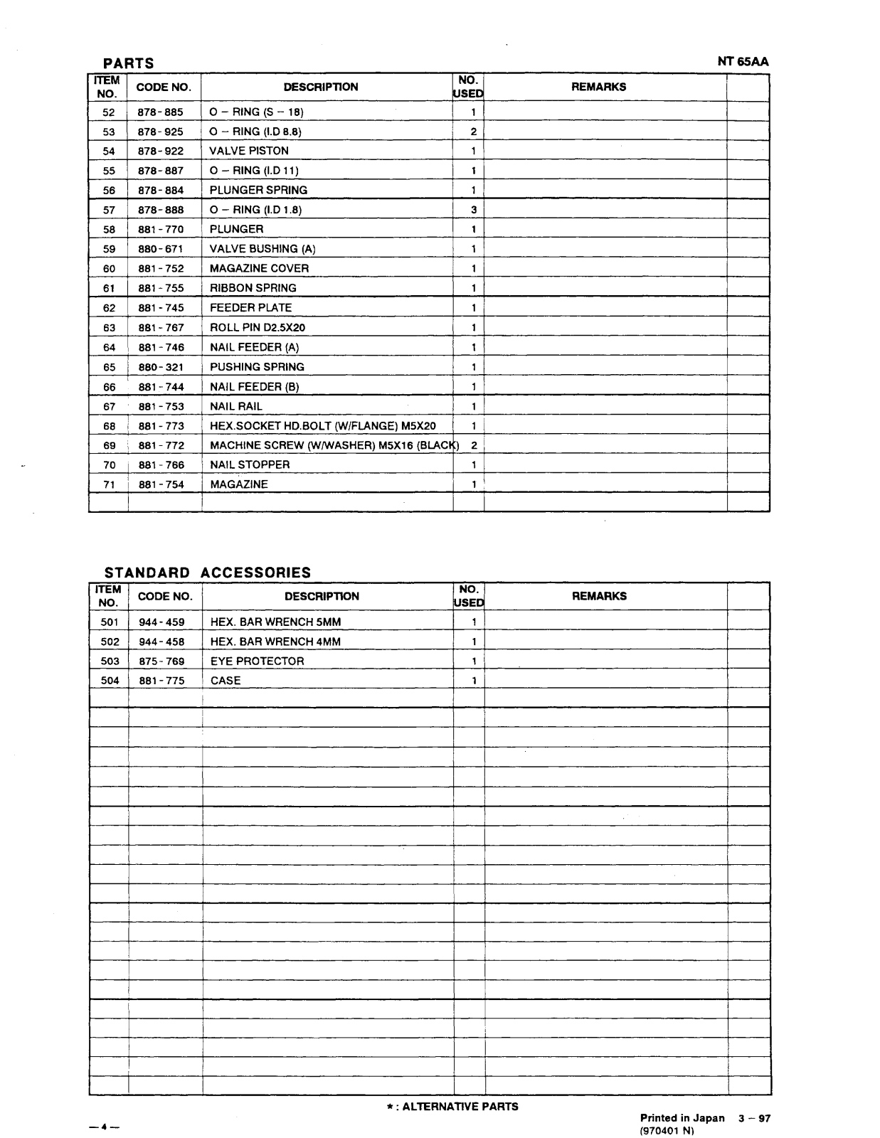 Hitachi NT65AA PARTS LIST