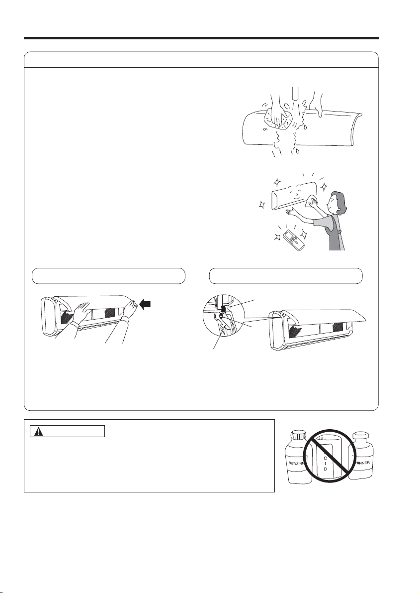 ● Do not use any aerosol or hair sprays near the indoor unit. This chemical