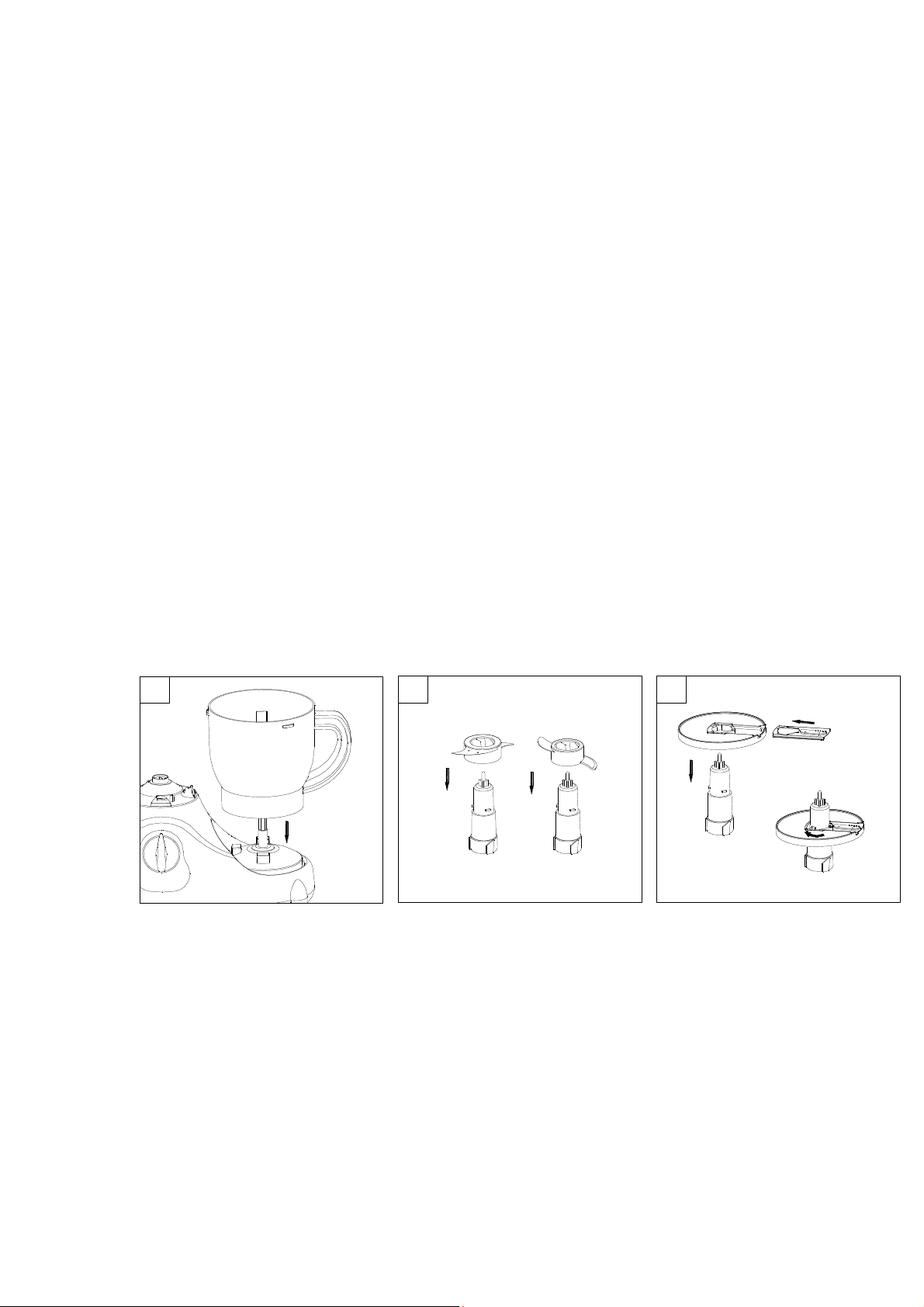 1. Quand vous utilisez le préparateur, assurez-vous que le bol I est détaché,