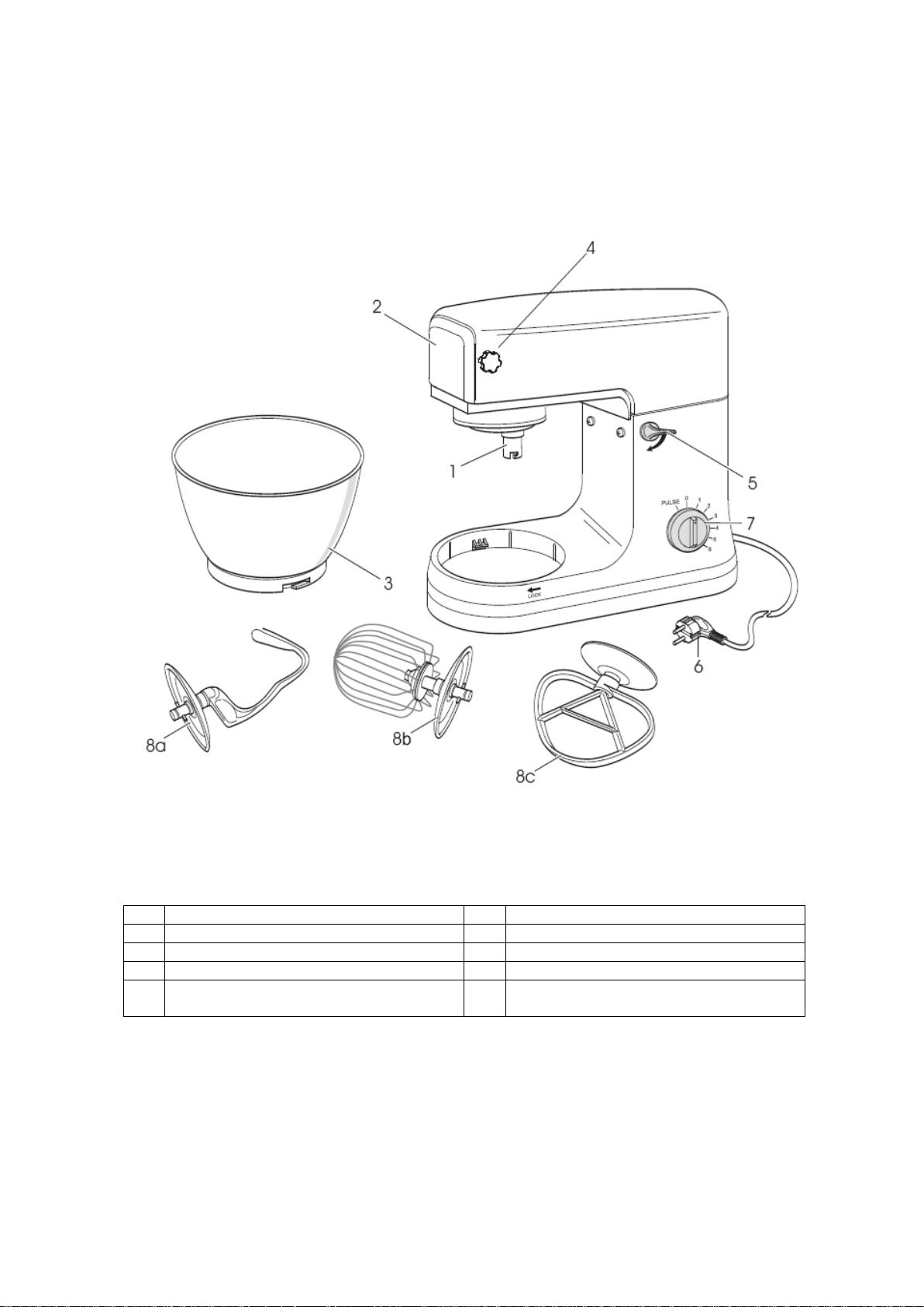 9. After kneading/stirring turn the switch (7) back to the “0” position as soon as the mixture has formed a ball.