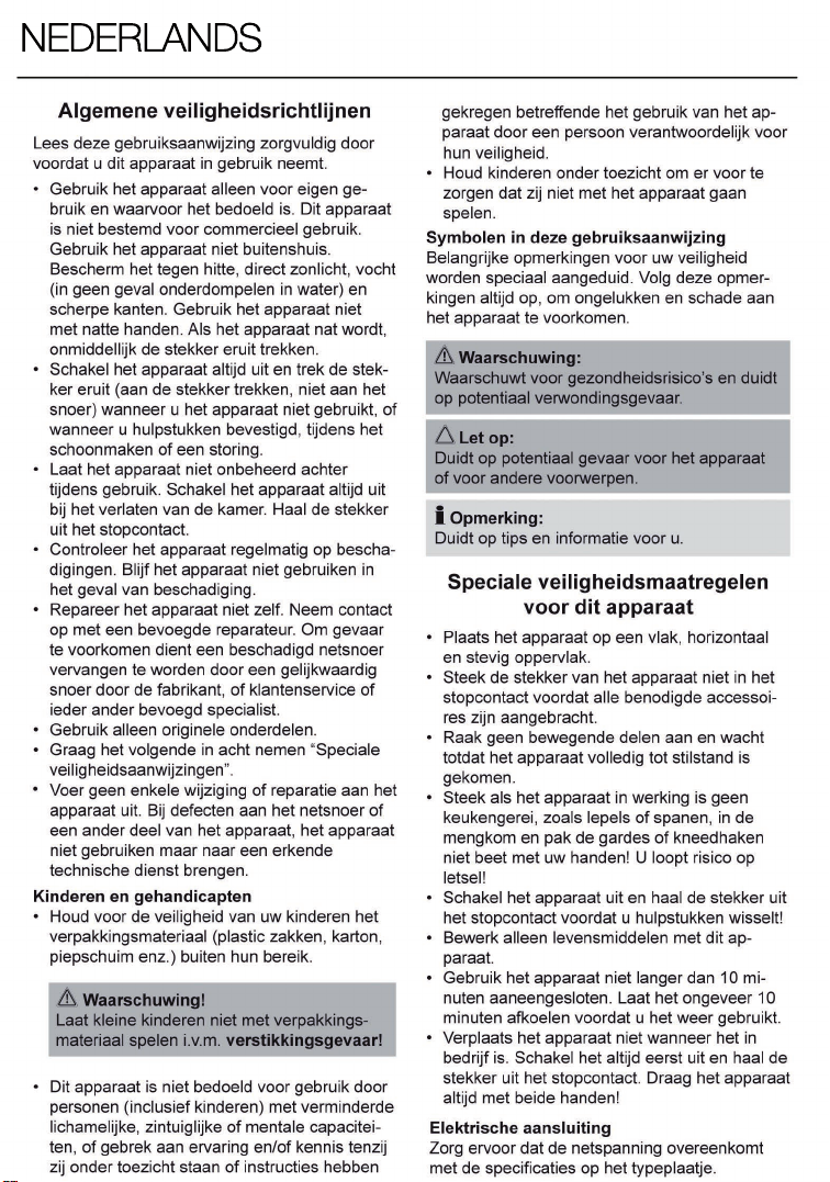 Quando l’apparecchio è in funzione, tenere le dita lontano dal recipiente.ATTENZIONE: cambiare gli accessori solo dopo aver spento l’apparecchio e staccato la spina.
