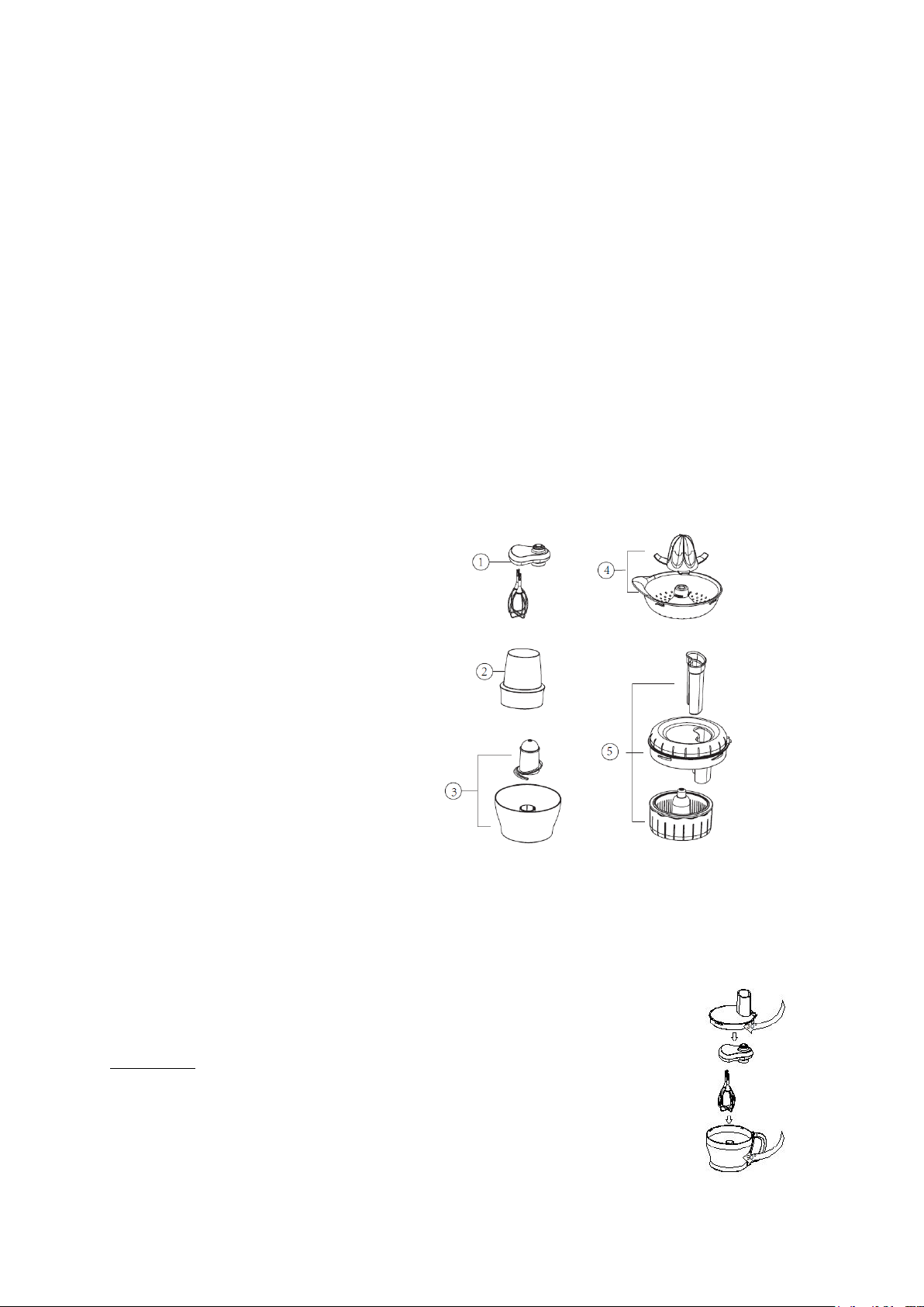 1. Attach the rotating accessory and the bowl onto the base unit.