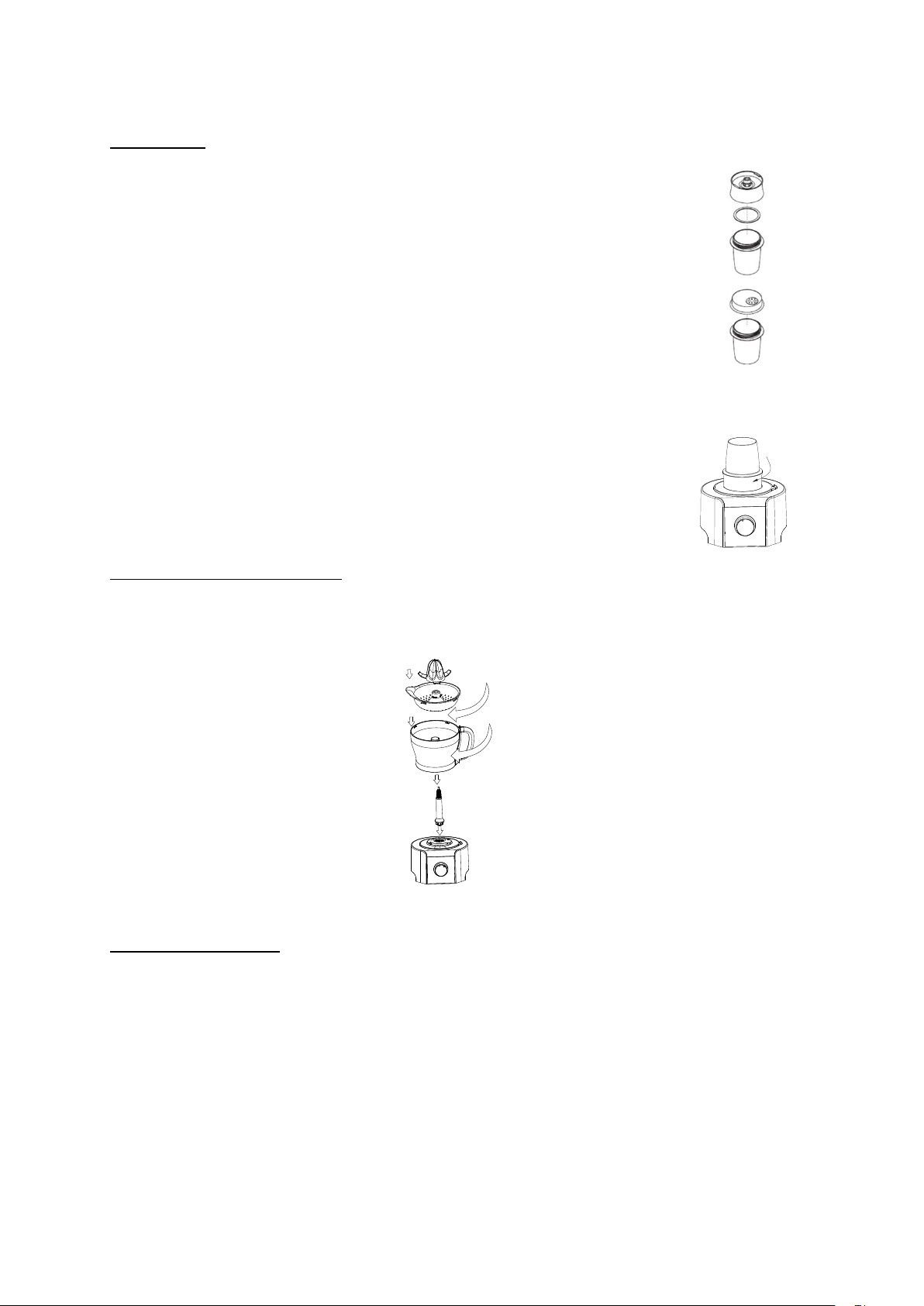 1. Fissare l'elemento rotante e il contenitore sulla base dell'unità.