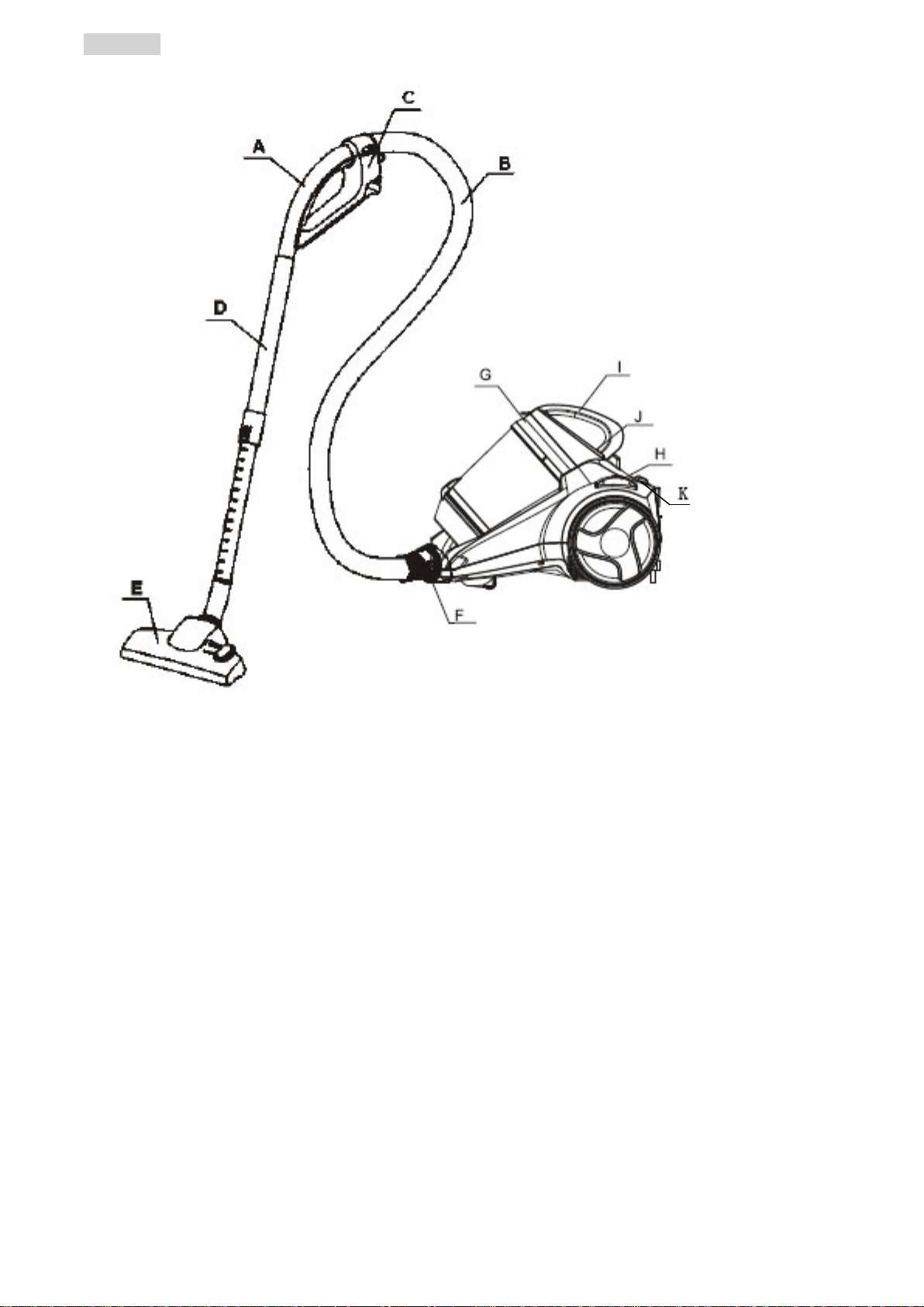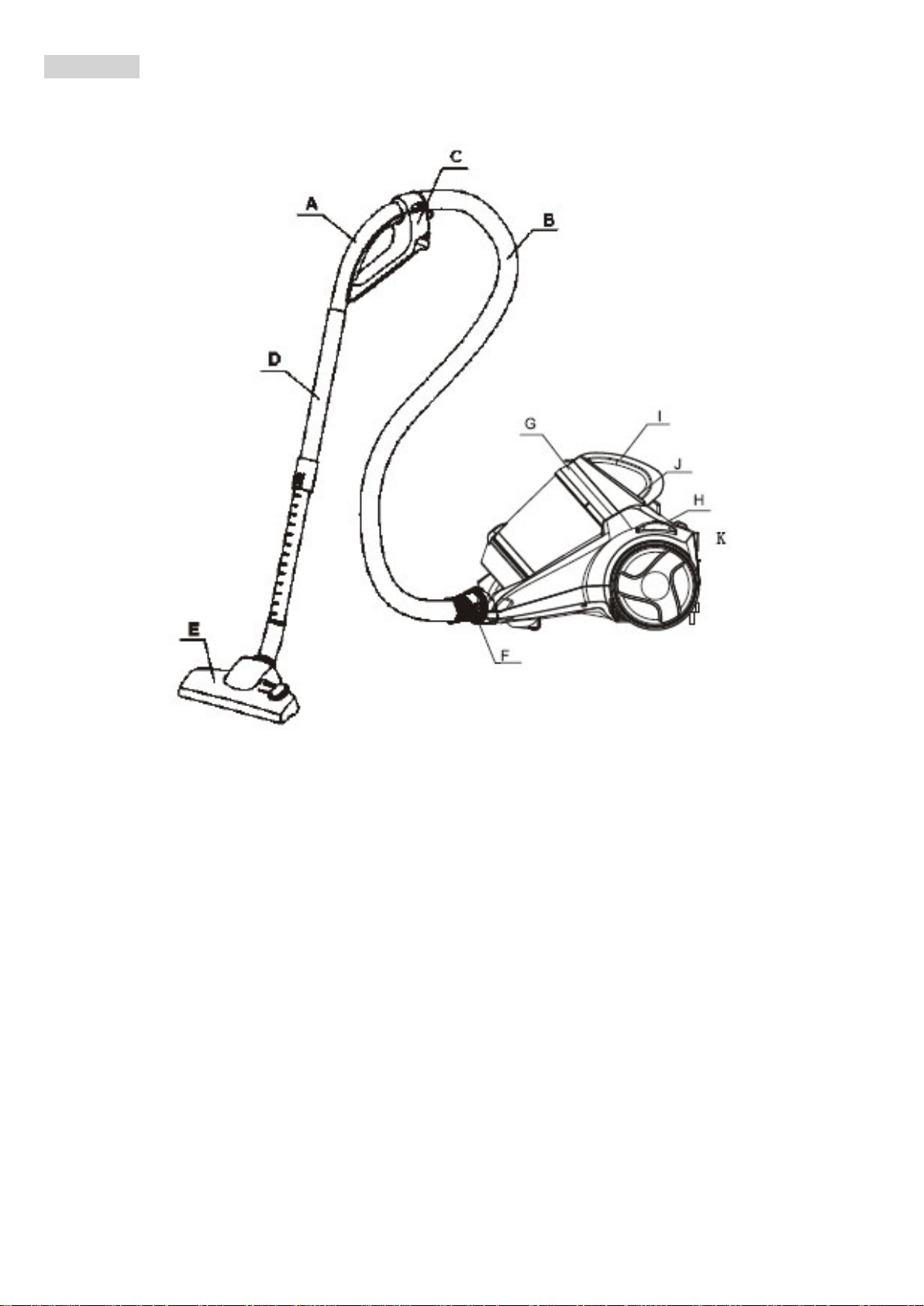 E. Spazzola per pavimenti J. Tasto contenitore della polvere