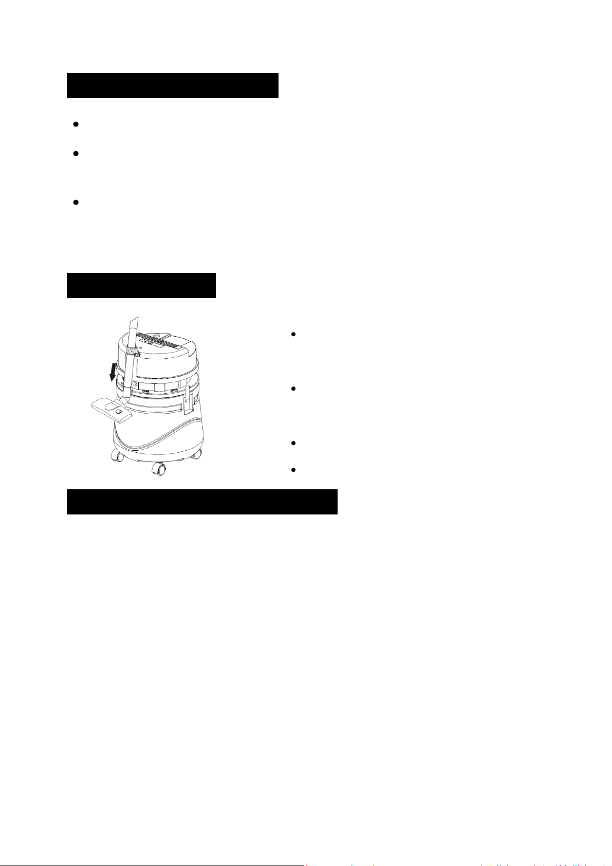 Grande capacité, puissance d'aspiration élevée Haut rendement d'aspiration de poussières Élimination de déchets solides divers et d'eaux usées Tube télescopique spécial d'une grande commodité d'emploi Roulettes universelles, souples et légères
