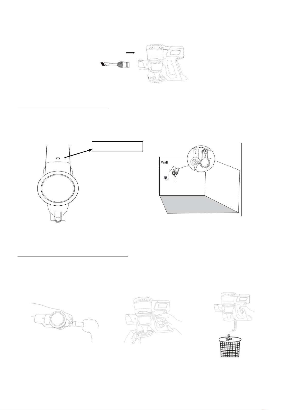 1. Premere il connettore batteria per scollegare batteria dal contenitore polvere