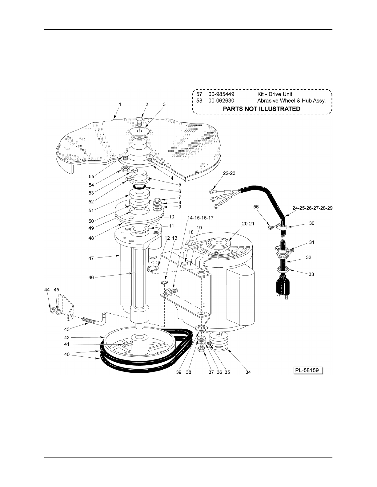 58 00-062630 Abrasive Wheel & Hub Assy. (Incls. Items 1 thru 4, 54, & 55)...................................................1