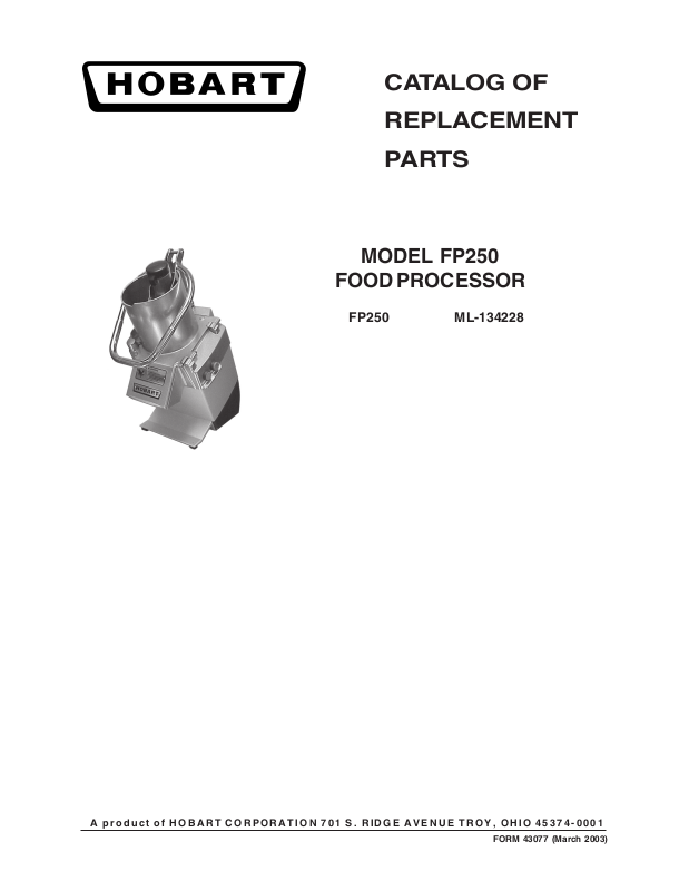 A product of HOBART CORPORATION 701 S. RIDGE AVENUE TROY, OHIO 45374-0001