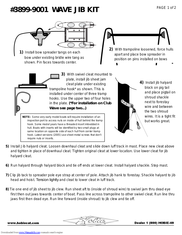 and tighten in place of downhaul cleat. Tighten original cleat at lower location. Use lower cleat for jib