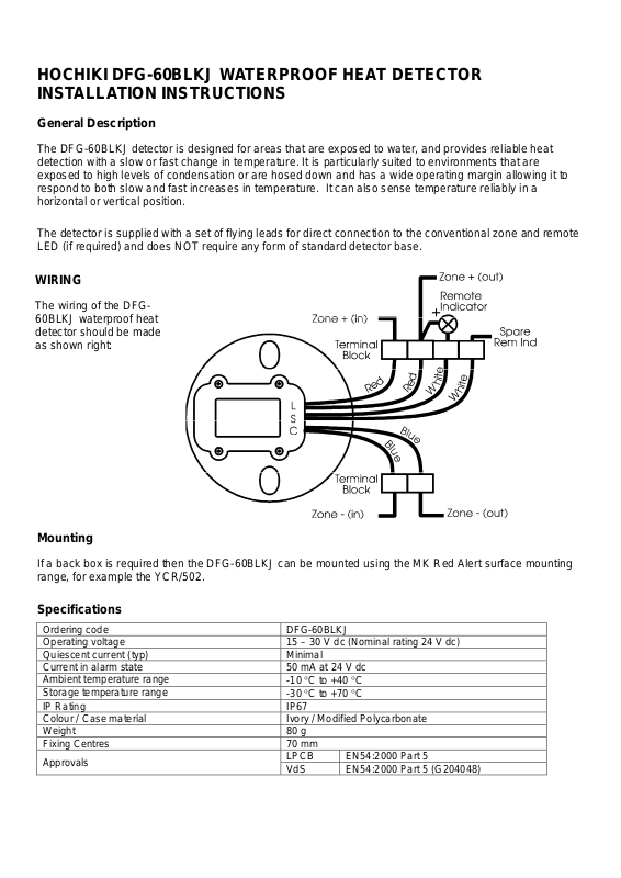 HOCHIKI DFG-60BLKJ WATERPROOF HEAT DETECTOR