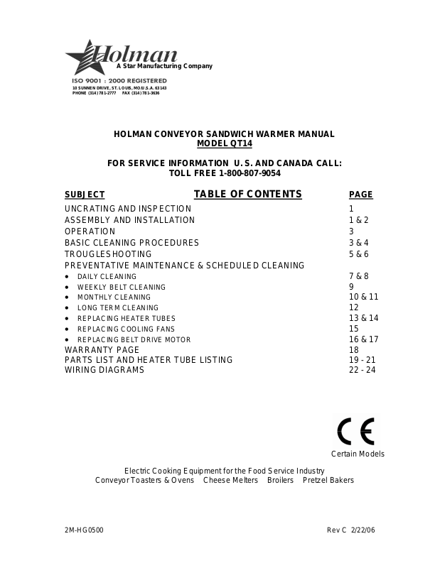 On/Off switch to the OFF position and call the Holman Cooking Equipment Factory