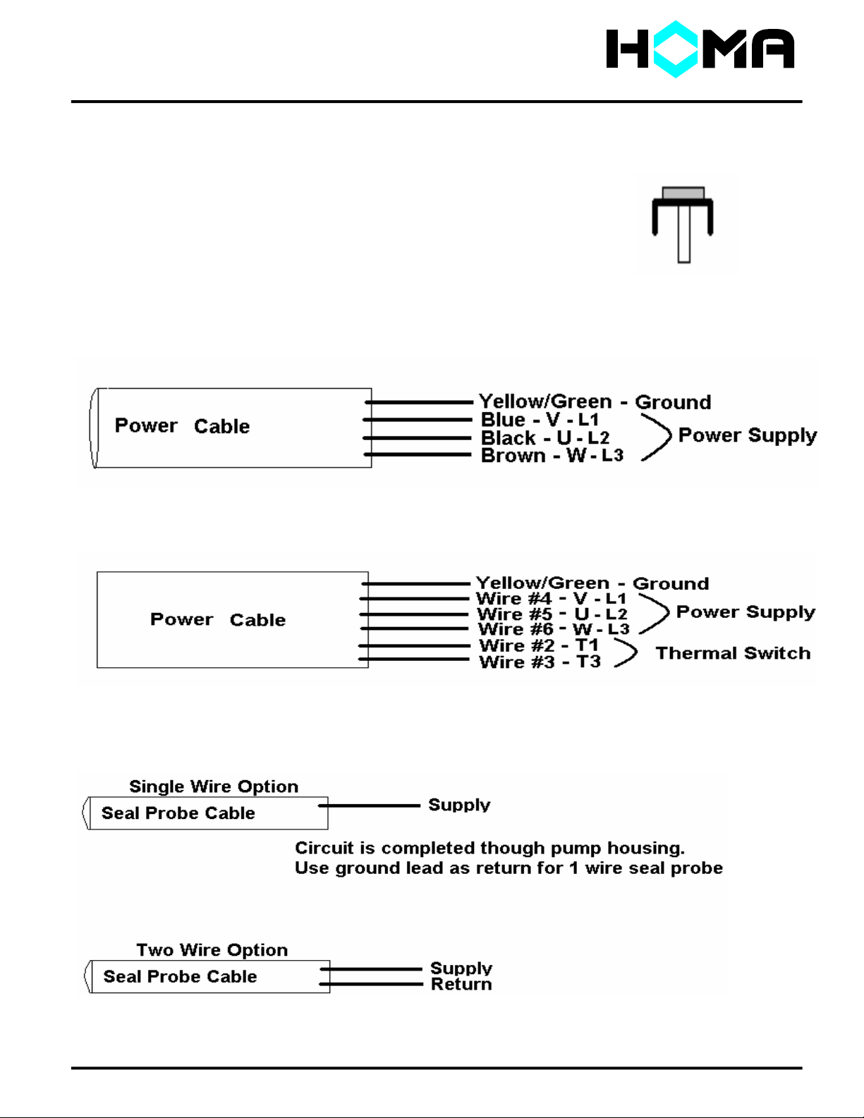 Note: See Three Phase connection diagram for seal probe wiring. Pg. 8