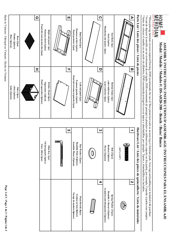 Model / Modèle / Modelo #: DS-A020-380 - Bench / Banc/ Banco