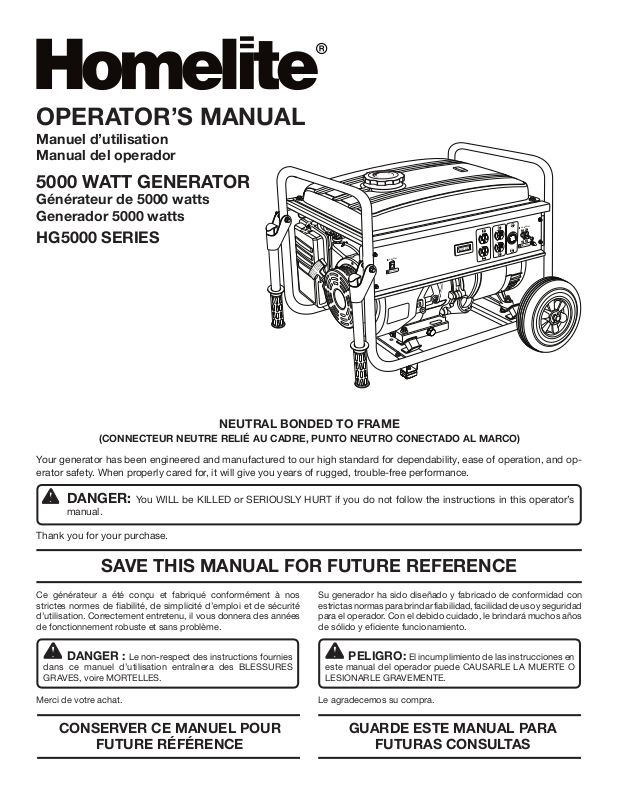 Your generator has been engineered and manufactured to our high standard for dependability, ease of operation, and operator safety. When properly cared for, it will give you years of rugged, trouble-free performance.