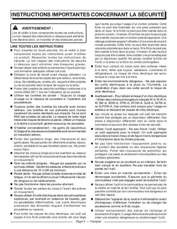 Rester alerte - Ne pas utiliser ce taille-bordures en état de