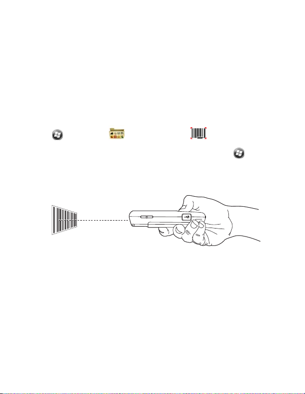 4. Center the aiming beam over the bar code. For optimum performance, avoid reflections by scanning the bar code at a slight