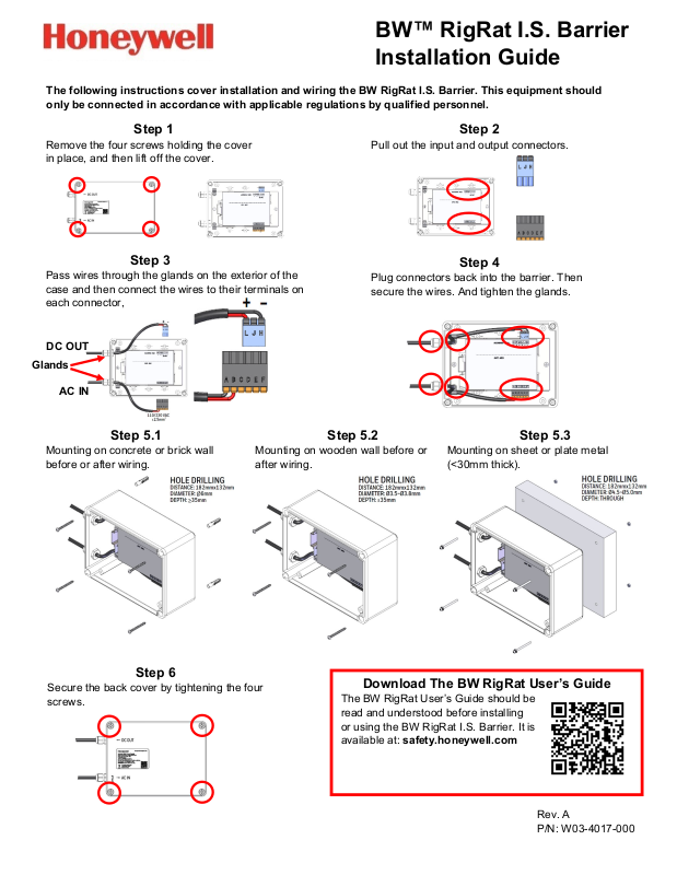 The following instructions cover installation and wiring the BW RigRat I.S. Barrier. This equipment should
